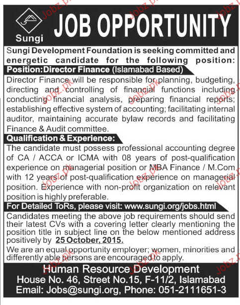Director Finance Job Opportunity