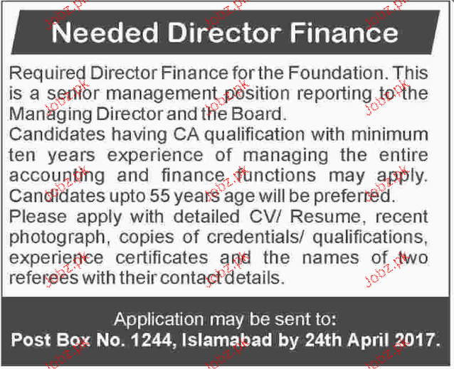 Director Finance Job Opportunity