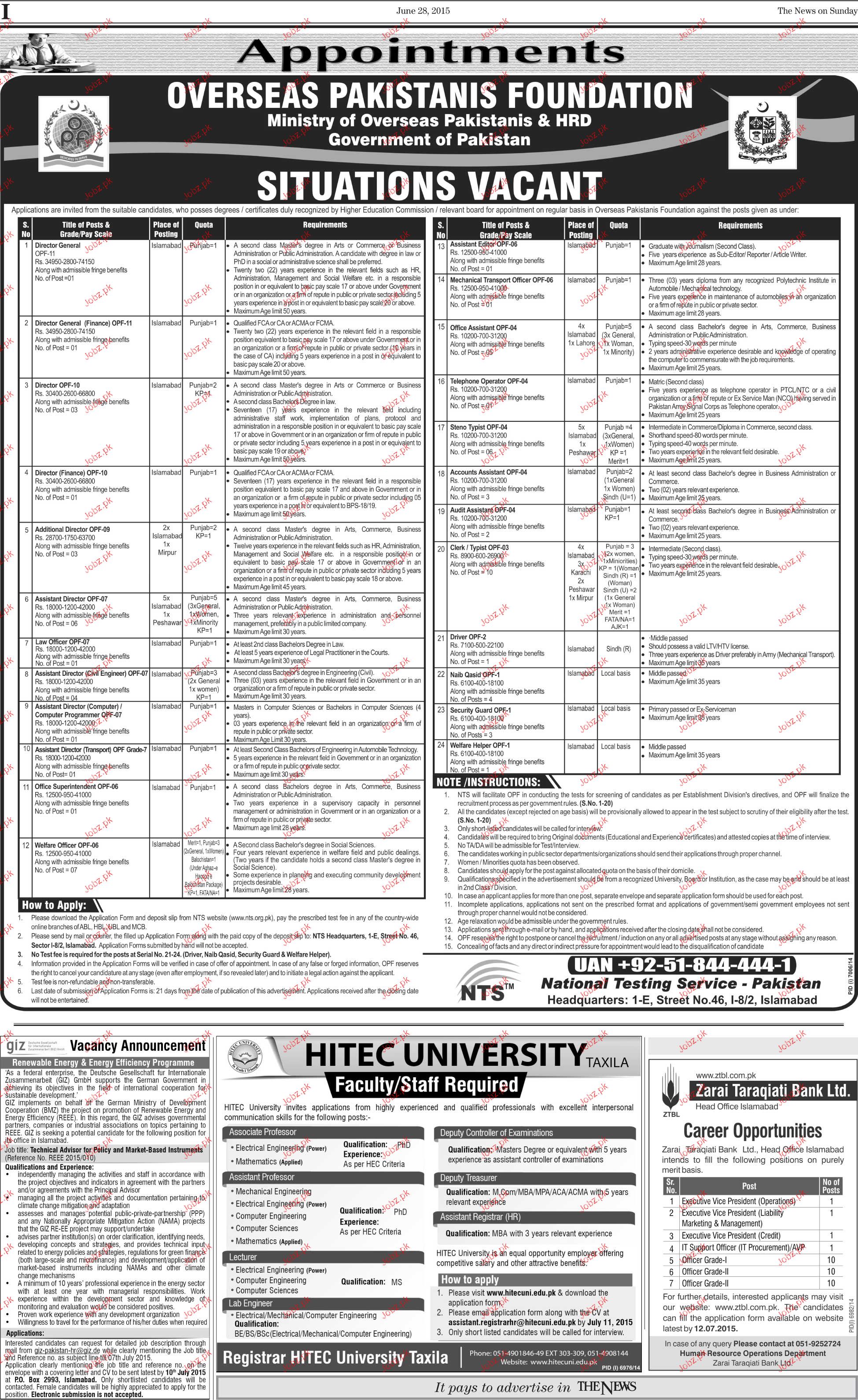 Apply as per details in job advertisement. Login to view further details of how to apply via https://www.jobz.pk online.