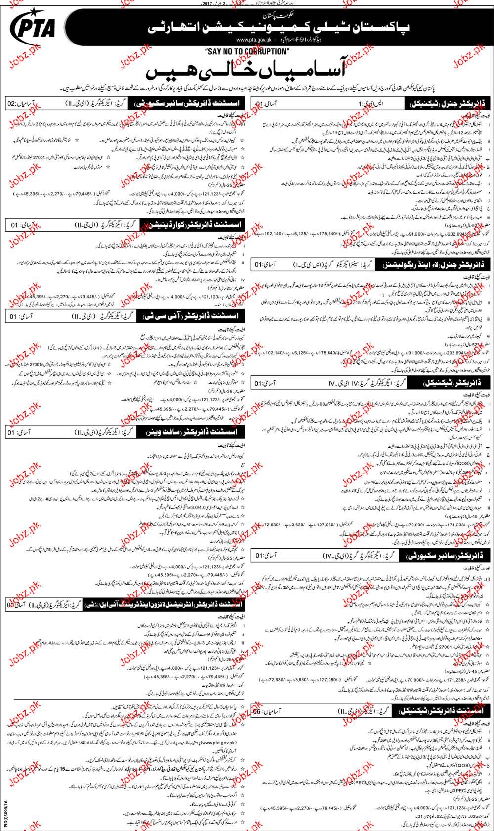 Director General Law, Assistant Director ICT Job In PTA