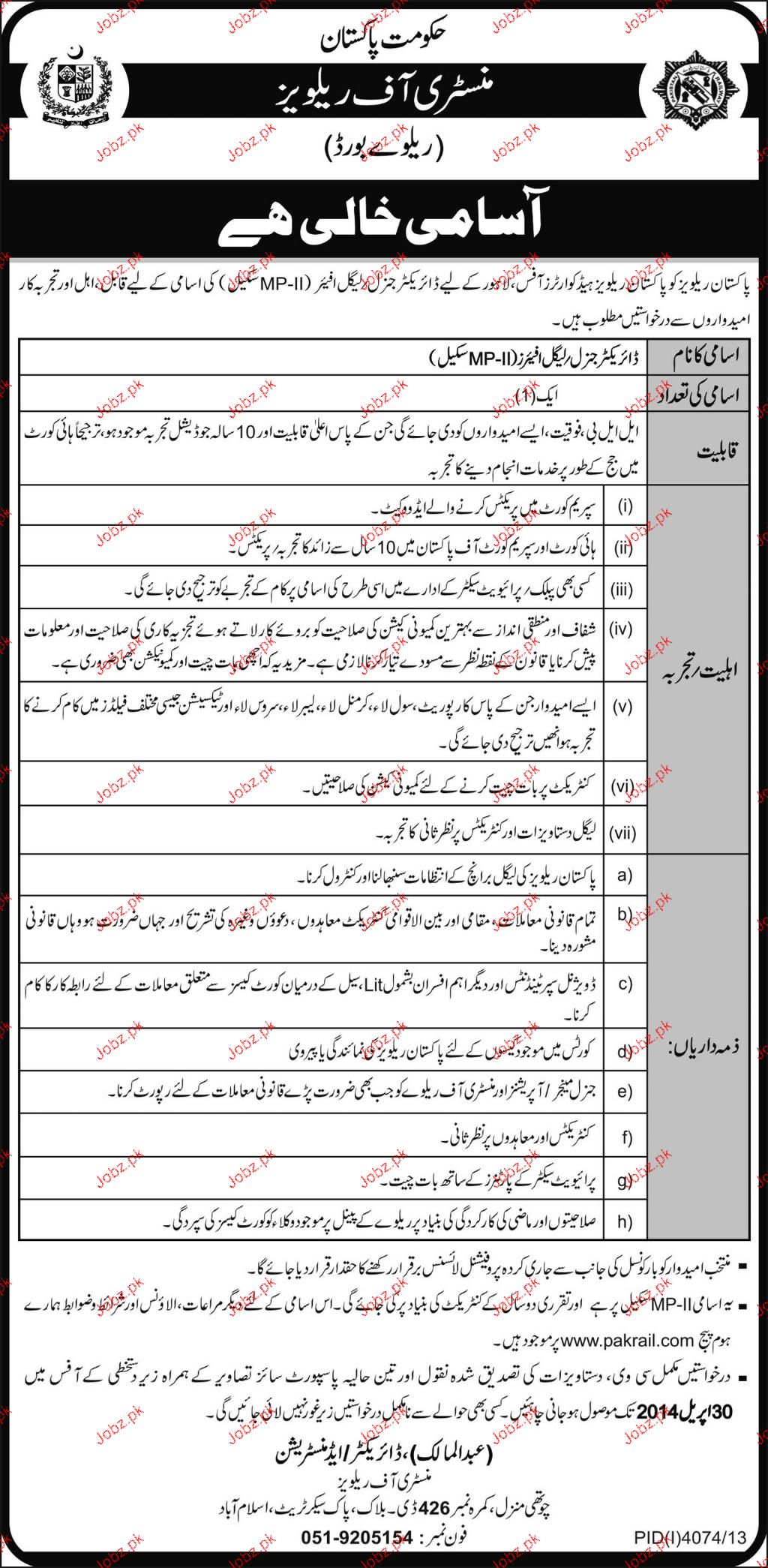 Apply as per details in job advertisement. Login to view further details of how to apply via https://www.jobz.pk online.