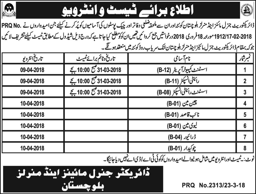 Latest Director General Mines and Minerals Computer Posts Quetta 2025