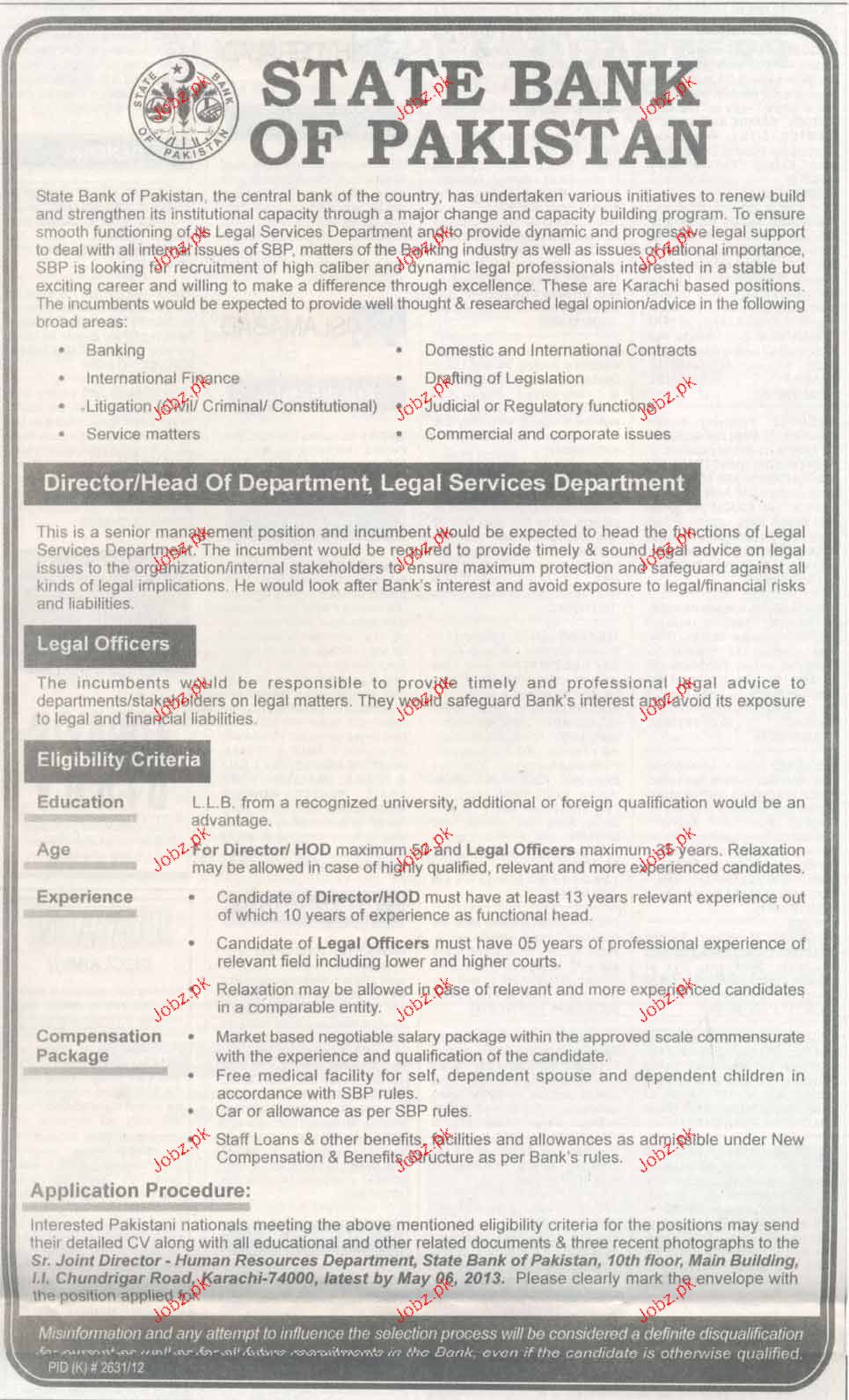 Apply as per details in job advertisement. Login to view further details of how to apply via https://www.jobz.pk online.