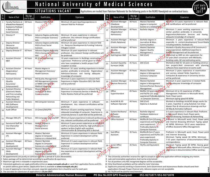 Apply as per details in job advertisement. Login to view further details of how to apply via https://www.jobz.pk online.