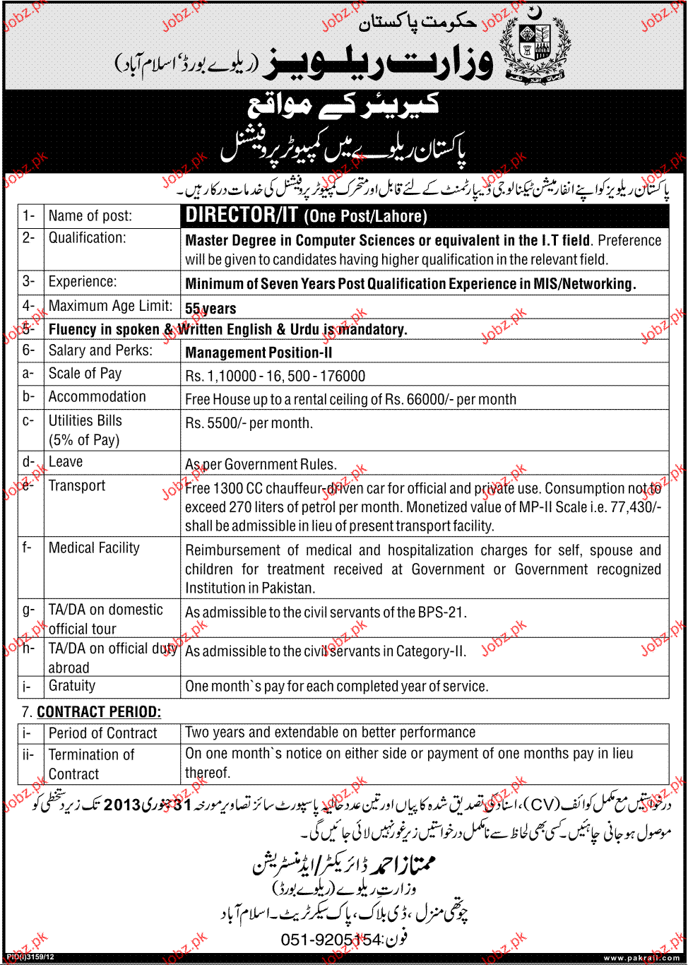 Latest Pakistan Railways IT Posts Islamabad 2025