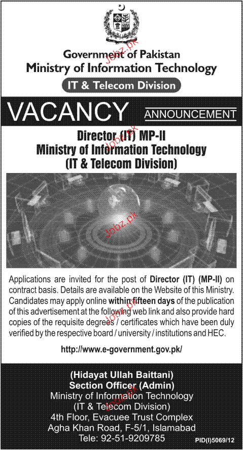 Apply as per details in job advertisement. Login to view further details of how to apply via https://www.jobz.pk online.