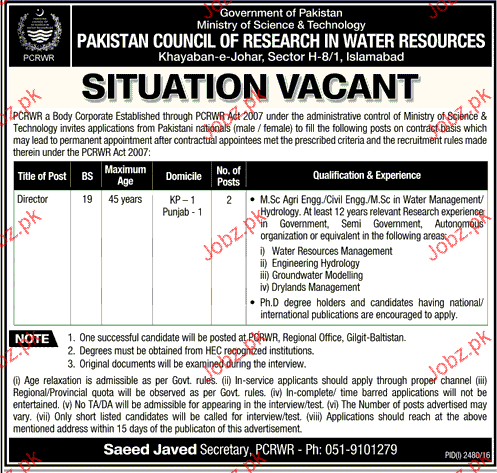 Apply as per details in job advertisement. Login to view further details of how to apply via https://www.jobz.pk online.