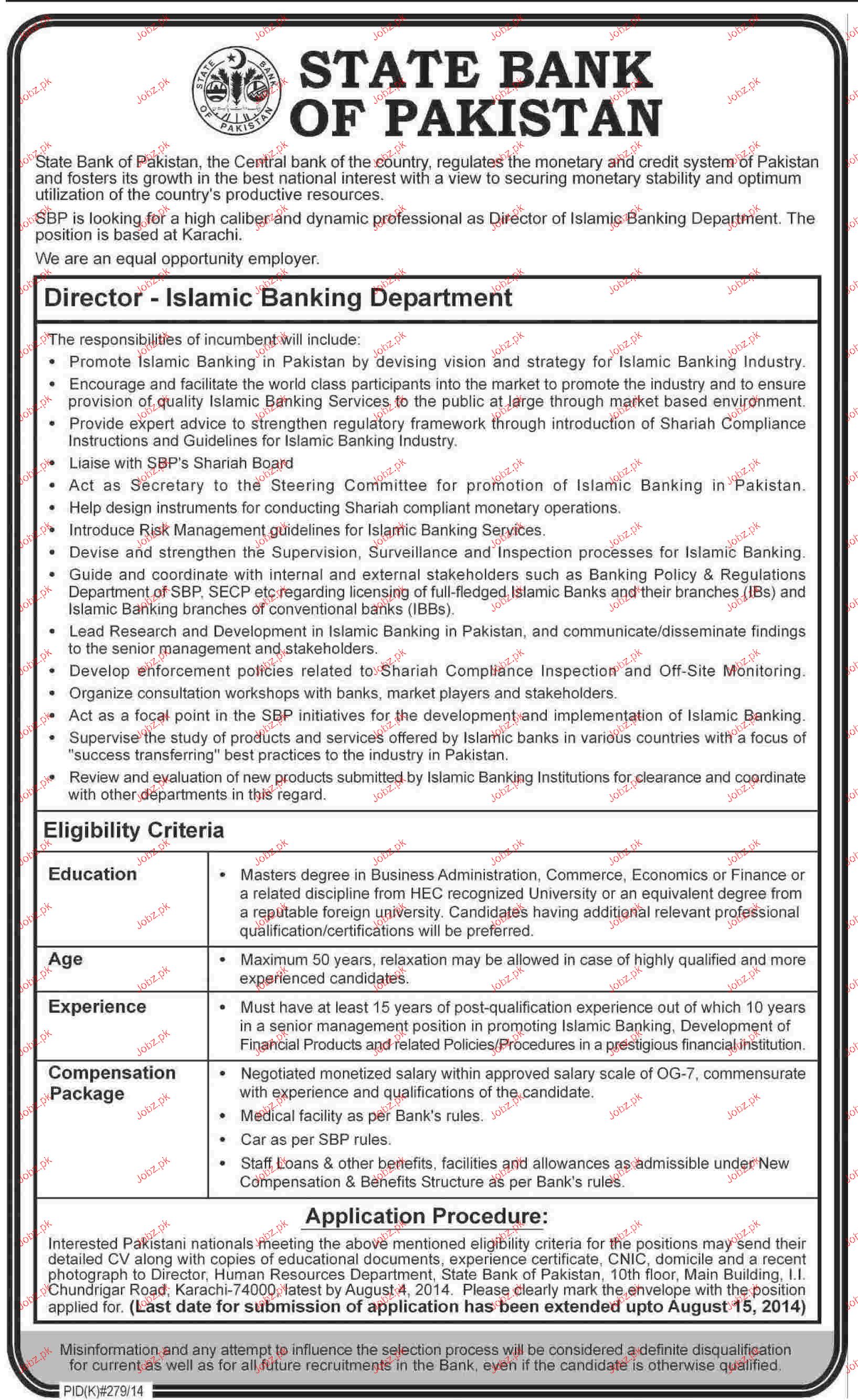 Apply as per details in job advertisement. Login to view further details of how to apply via https://www.jobz.pk online.