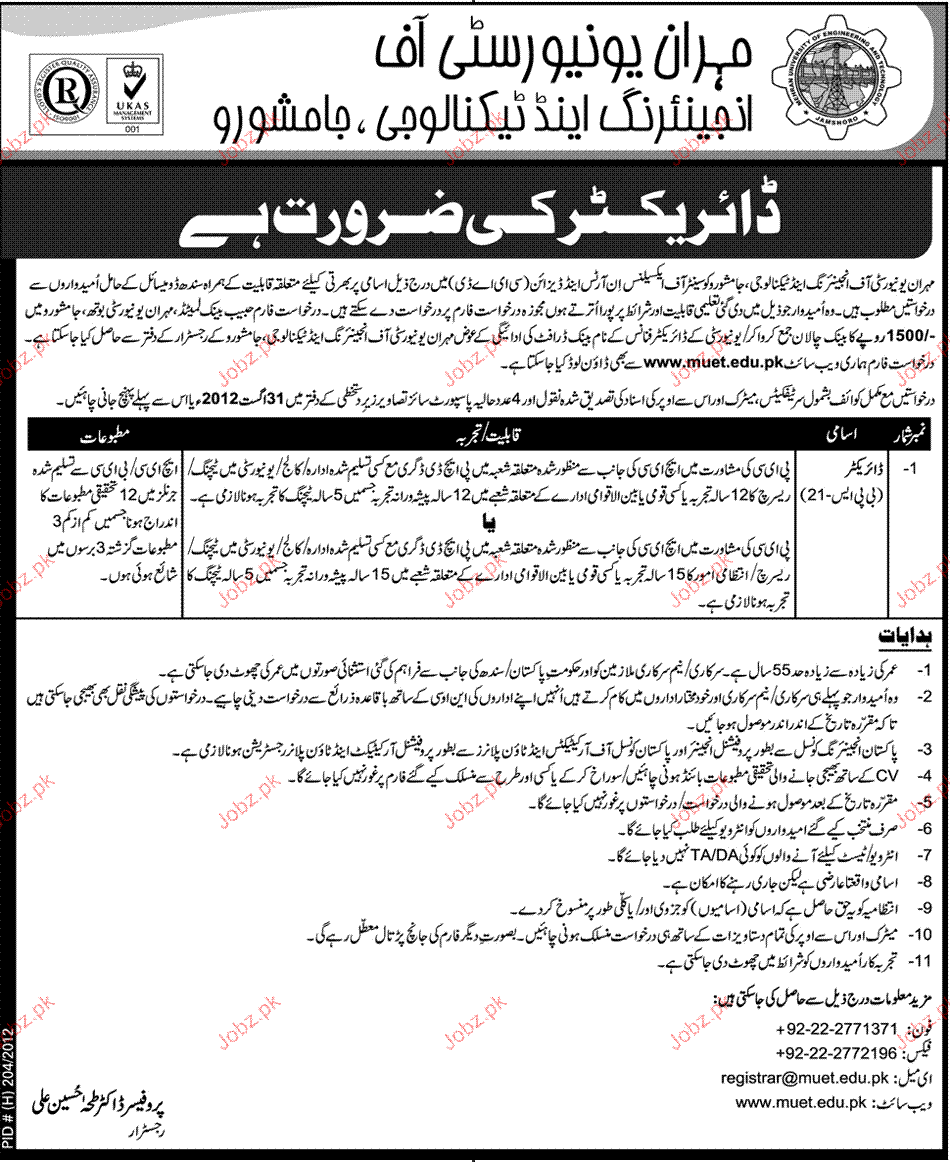 Apply as per details in job advertisement. Login to view further details of how to apply via https://www.jobz.pk online.