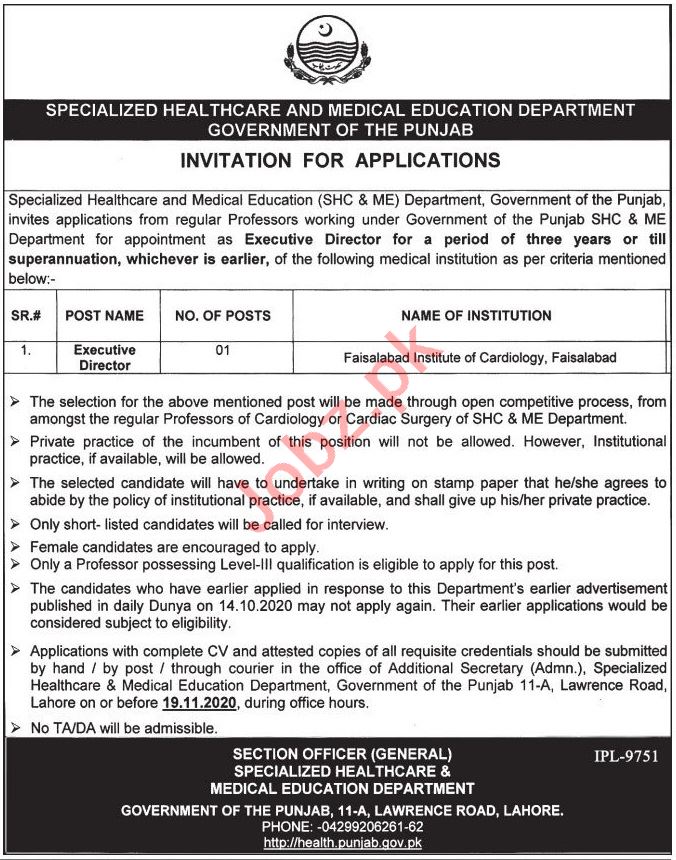 Latest Specialized Healthcare & Medical Education Department Executive Posts Faisalabad 2025