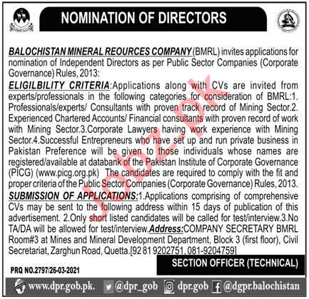 Director Jobs In Balochistan Mineral Resource Limited BMRL