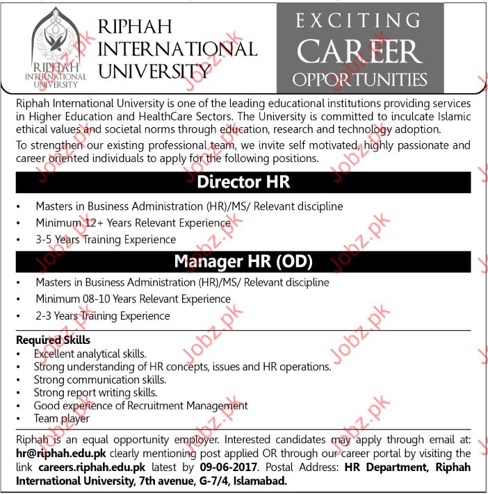 Apply as per details in job advertisement. Login to view further details of how to apply via https://www.jobz.pk online.