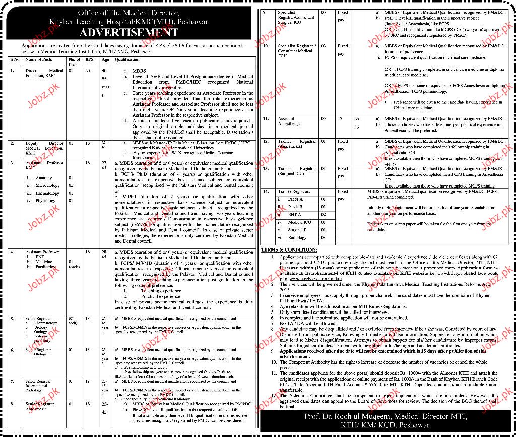 Apply as per details in job advertisement. Login to view further details of how to apply via https://www.jobz.pk online.