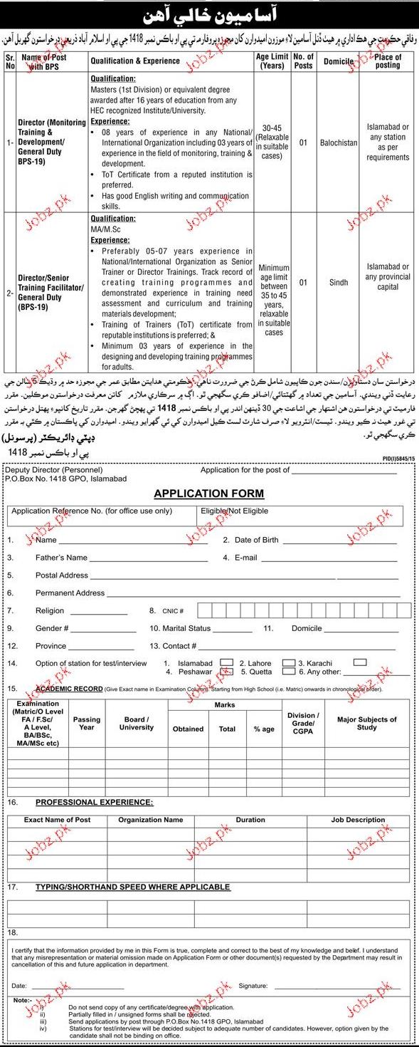 Apply as per details in job advertisement. Login to view further details of how to apply via https://www.jobz.pk online.