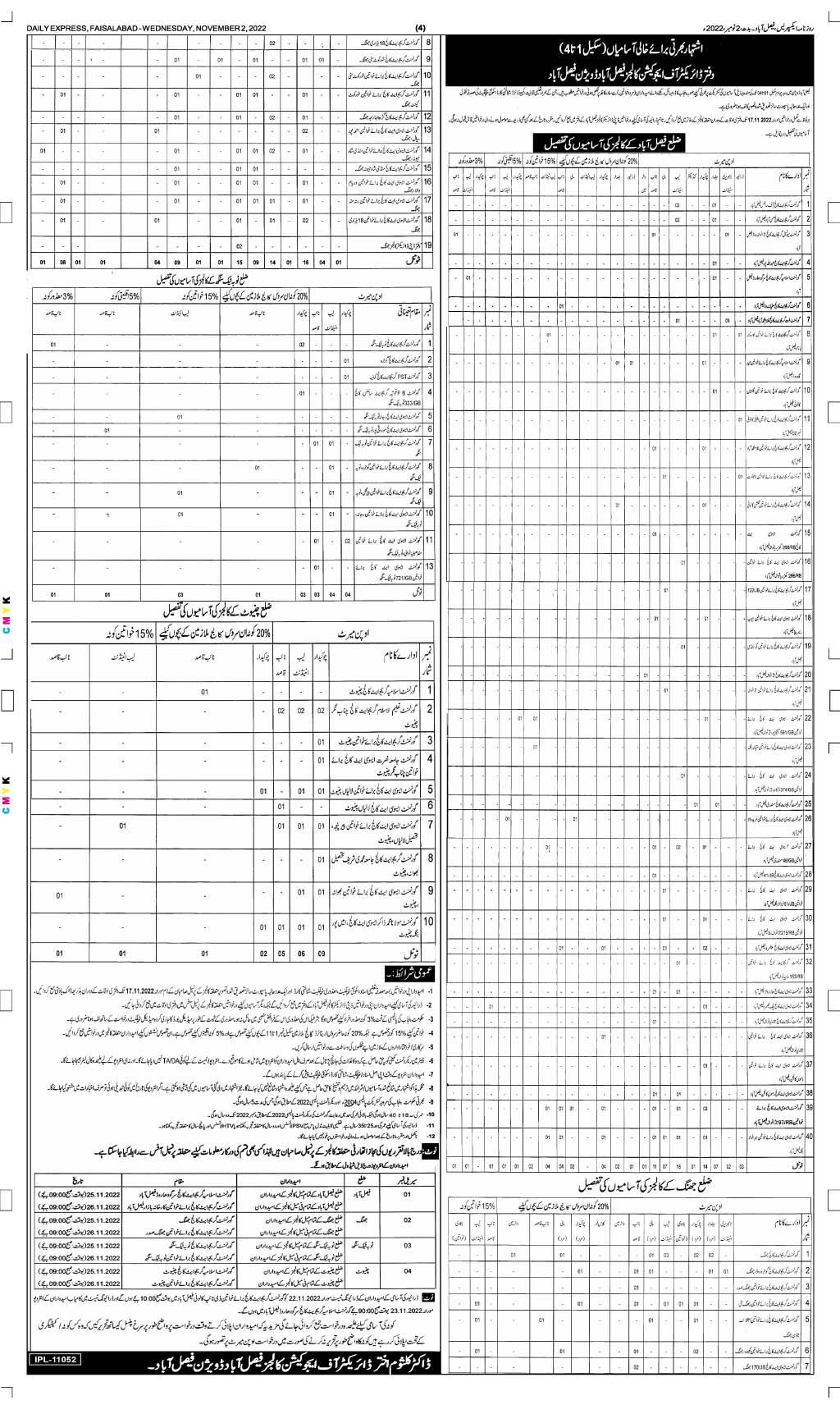 Deputy Director of Education Colleges Faisalabad, faisalabad Punjab Pakistan invites applications from eligible candidates for the post of laboratory attendant, mali, baildar, chowkidar, naib qasid, conductor and driver as per advertisement of November 2, 2022 published in daily Express Newspaper. Preferred Education is Matric, Middle and Primary etc.