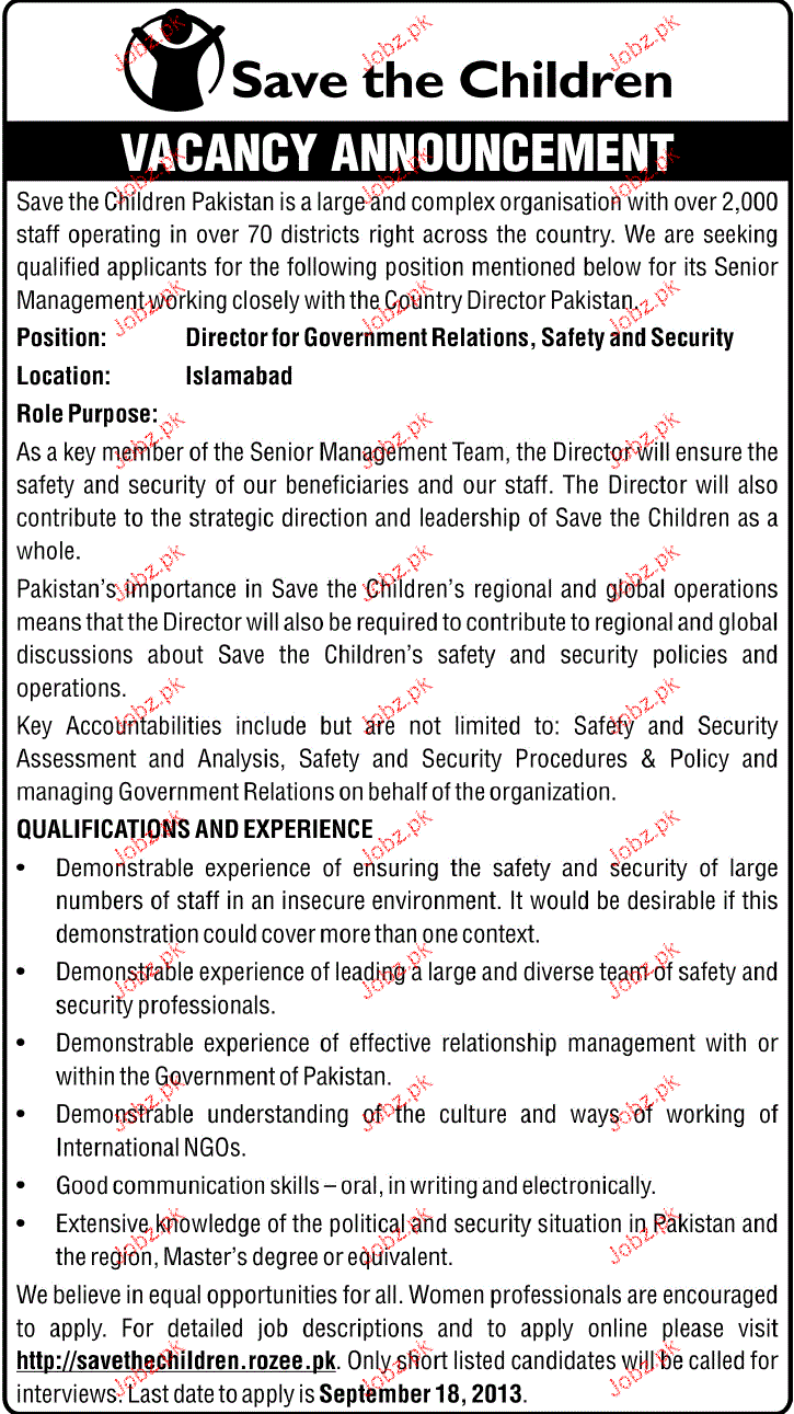 Apply as per details in job advertisement. Login to view further details of how to apply via https://www.jobz.pk online.