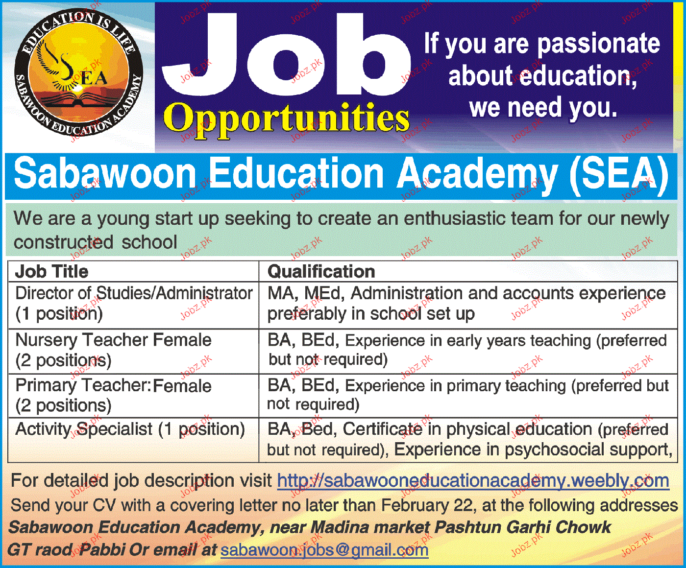 Apply as per details in job advertisement. Login to view further details of how to apply via https://www.jobz.pk online.