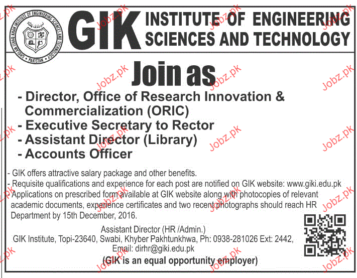 Director Officer Research Innovation Job In GIK