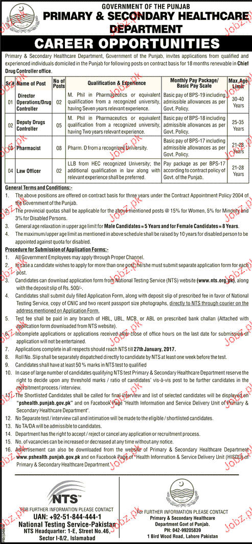 Apply as per details in job advertisement. Login to view further details of how to apply via https://www.jobz.pk online.