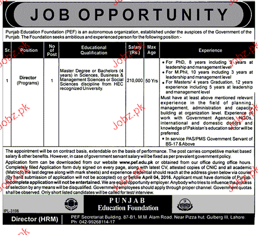 Apply as per details in job advertisement. Login to view further details of how to apply via https://www.jobz.pk online.