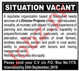 Apply as per details in job advertisement. Login to view further details of how to apply via https://www.jobz.pk online.