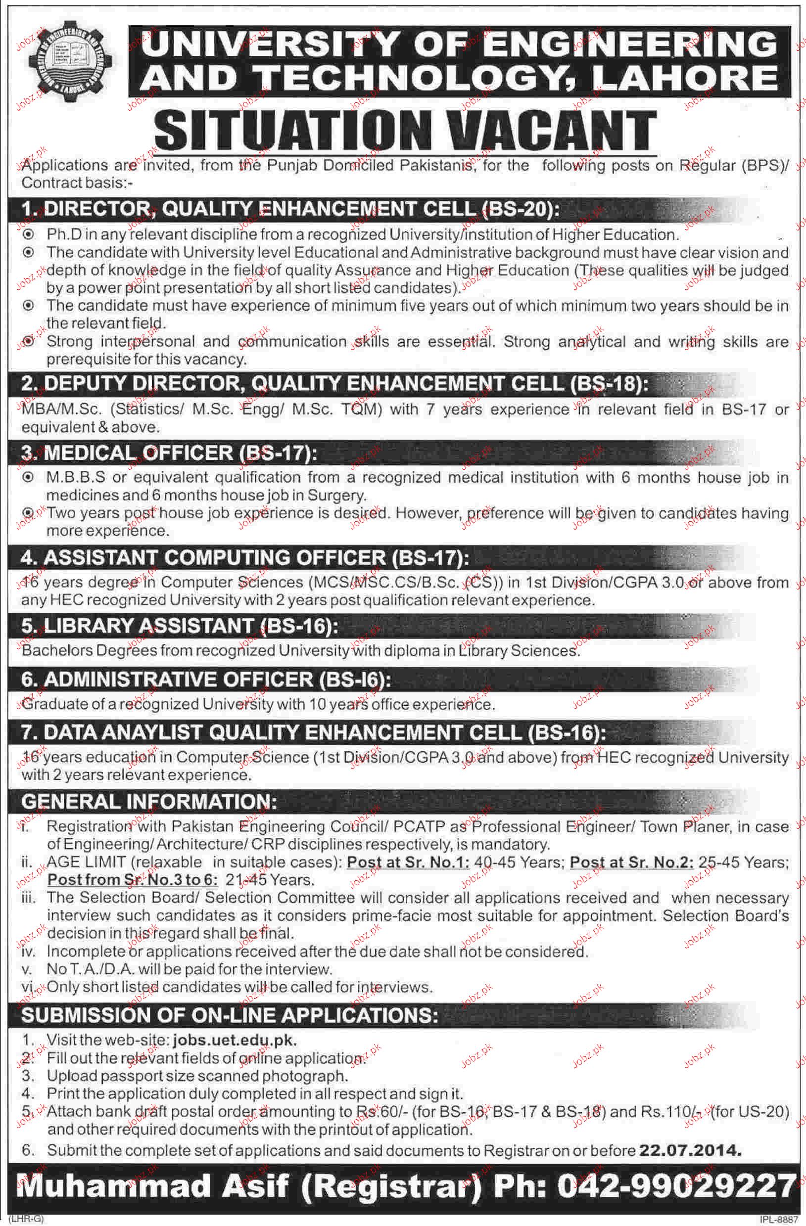 Director Quality Enhancement, Deputy Director Job In UET Lah