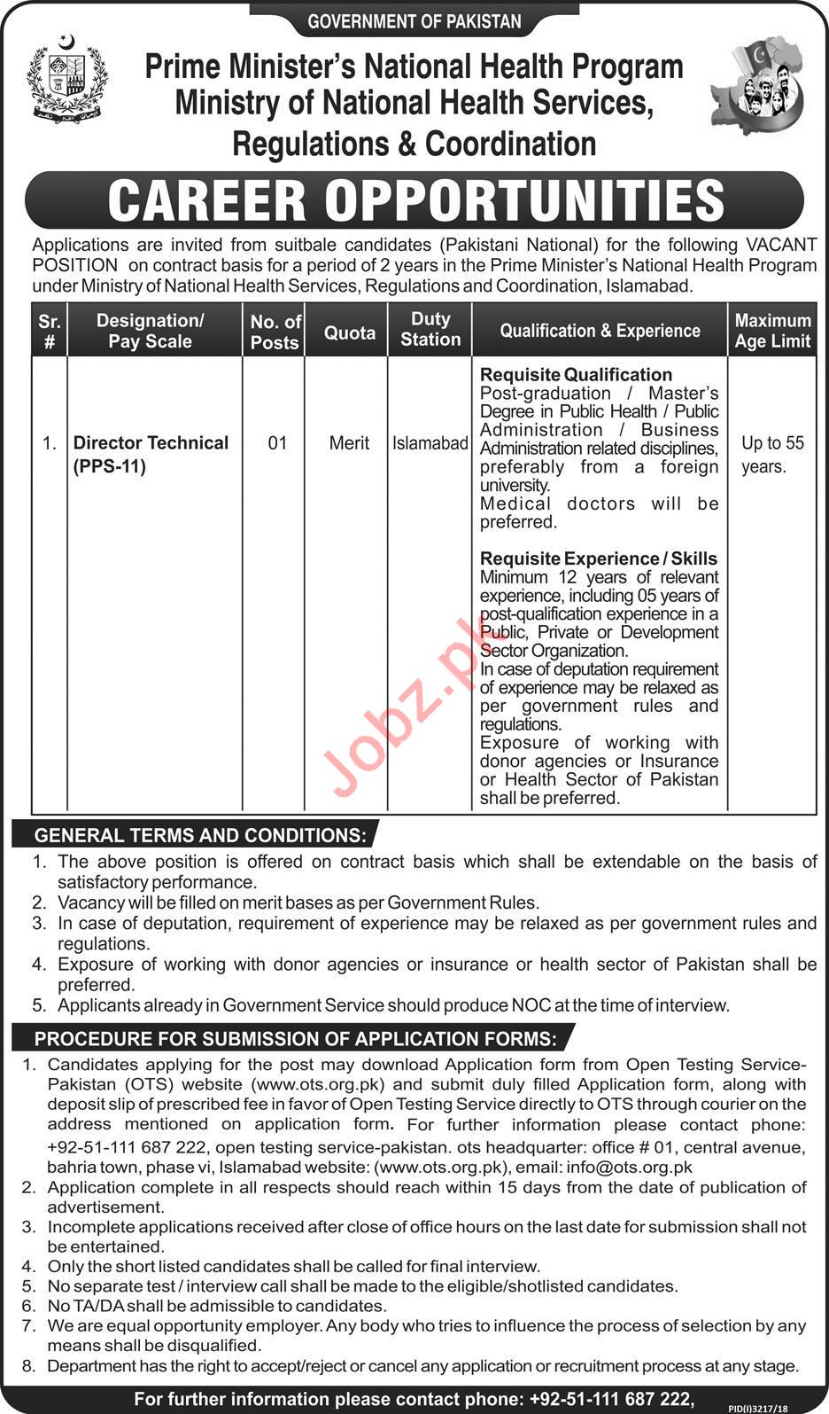 Vacancies in Ministry of National Health Services Regulations & Coordination NHSRC Advertisement January 2019