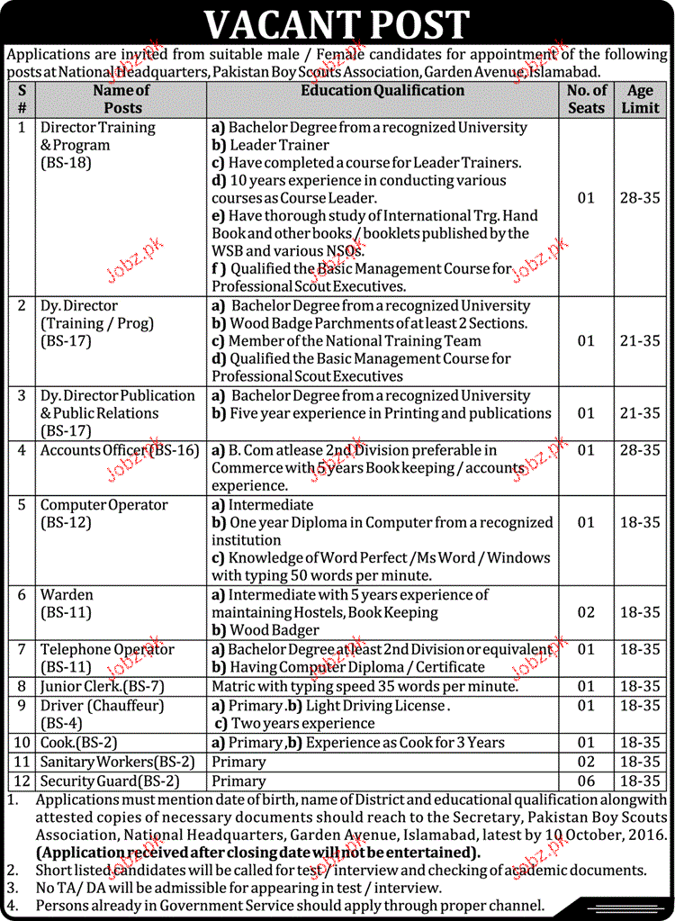Apply as per details in job advertisement. Login to view further details of how to apply via https://www.jobz.pk online.