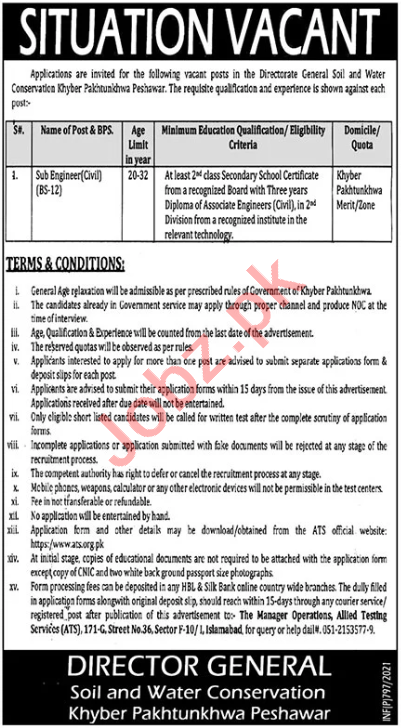 Latest Directorate General of Soil and Water Conservation Engineering Posts Peshawar 2025