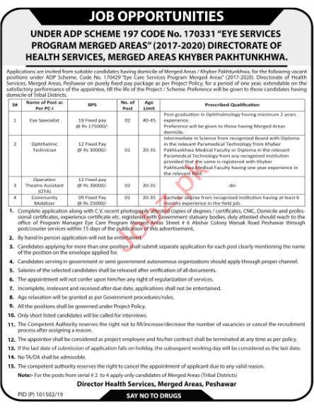 Directorate Health Services Merged Areas KPK Jobs 2019