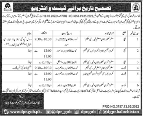 Vacant posts including education teacher are announced in Directorate of Literacy and Non Formal Education DLNFE Quetta, quetta Balochistan Pakistan as per 15 May 2022 advertisement in daily Jang Newspaper. Master and Mphil etc. educational qualification will be preferred.