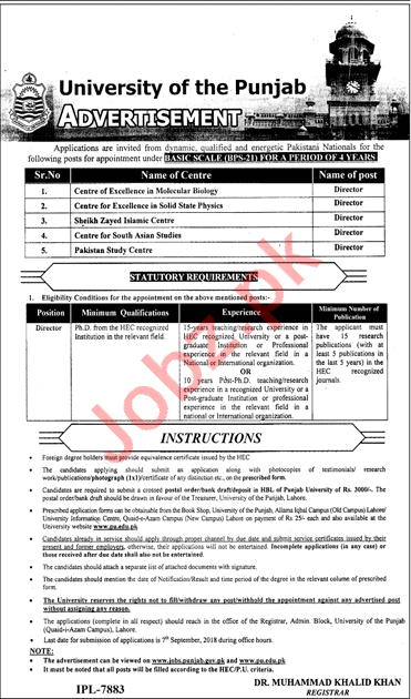 Latest University Of The Punjab PU Education Posts Lahore 2025