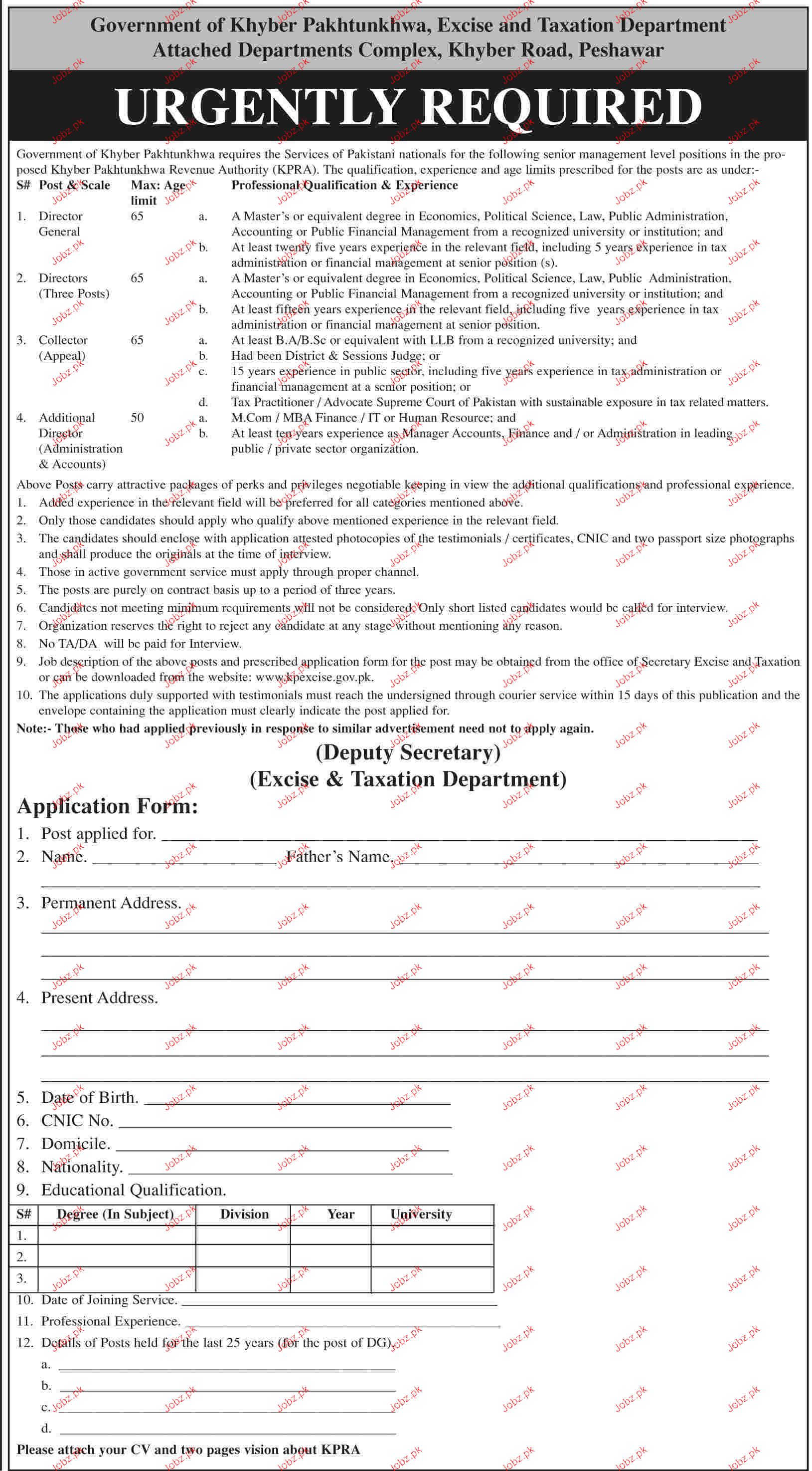 Apply as per details in job advertisement. Login to view further details of how to apply via https://www.jobz.pk online.