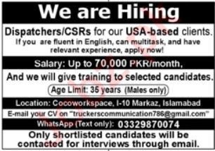 Truckers National Insurance is looking for candidates for following posts as per job advertisement published in daily Jang Newspaper of February 9, 2025 for location Islamabad, islamabad Islamabad Pakistan: