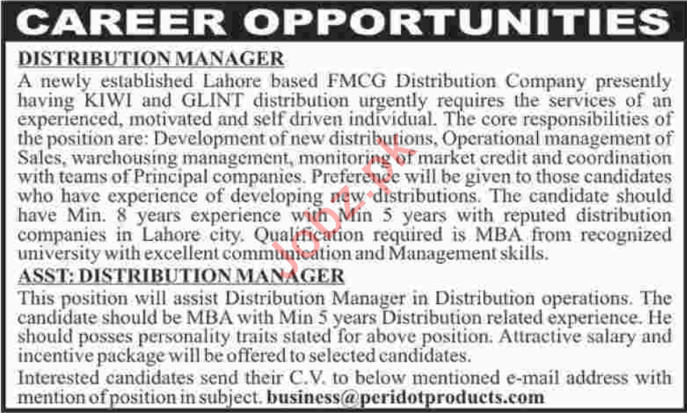 Latest Peridot Products Pvt Limited Management Posts Karachi 2025