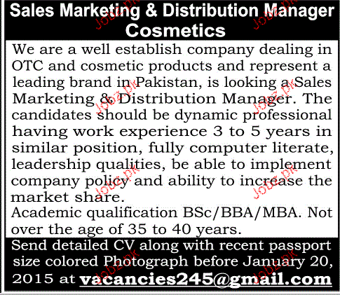 Distribution Manager Cosmetics And Marketing Staff Wanted