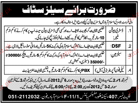Apply as per details in job advertisement. Login to view further details of how to apply via https://www.jobz.pk online.