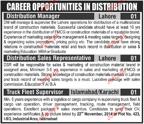 Distribution Manager, Truck Fleet Supervisors Wanted