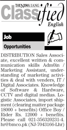 Apply as per details in job advertisement. Login to view further details of how to apply via https://www.jobz.pk online.
