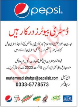 PepsiCO is looking for candidates for following posts as per job advertisement published in daily Jang Newspaper of July 23, 2023 for location Rawalpindi, rawalpindi Punjab Pakistan: