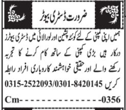 Private Company invites applications for job positions advertised in daily Jang dated 11 October 2022 for following vacancies in Quetta, loralai, quetta and pishin Balochistan Pakistan.