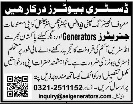 Distributors are required for Famous Engineering Company Advance Electronics International in Lahore. Financial Strong Parties and experienced send their application with all detail.