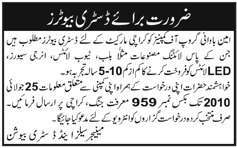 Apply as per details in job advertisement. Login to view further details of how to apply via https://www.jobz.pk online.