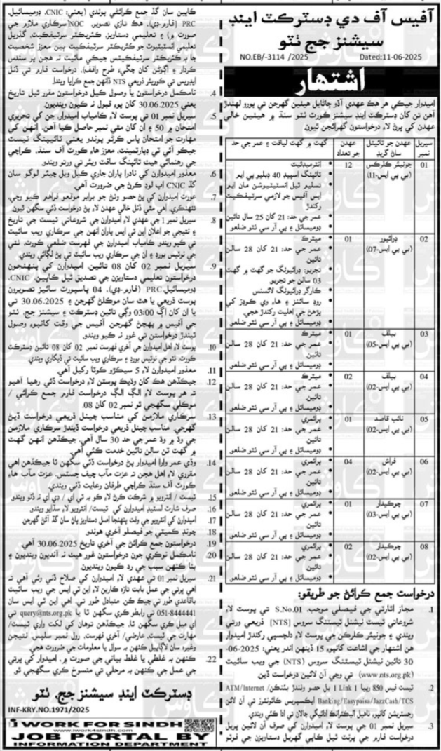 District and Session Judge is looking for candidates for following posts as per job advertisement published in daily Kawish Newspaper of June 17, 2025 for location Tando Adam, tando adam Sindh Pakistan: