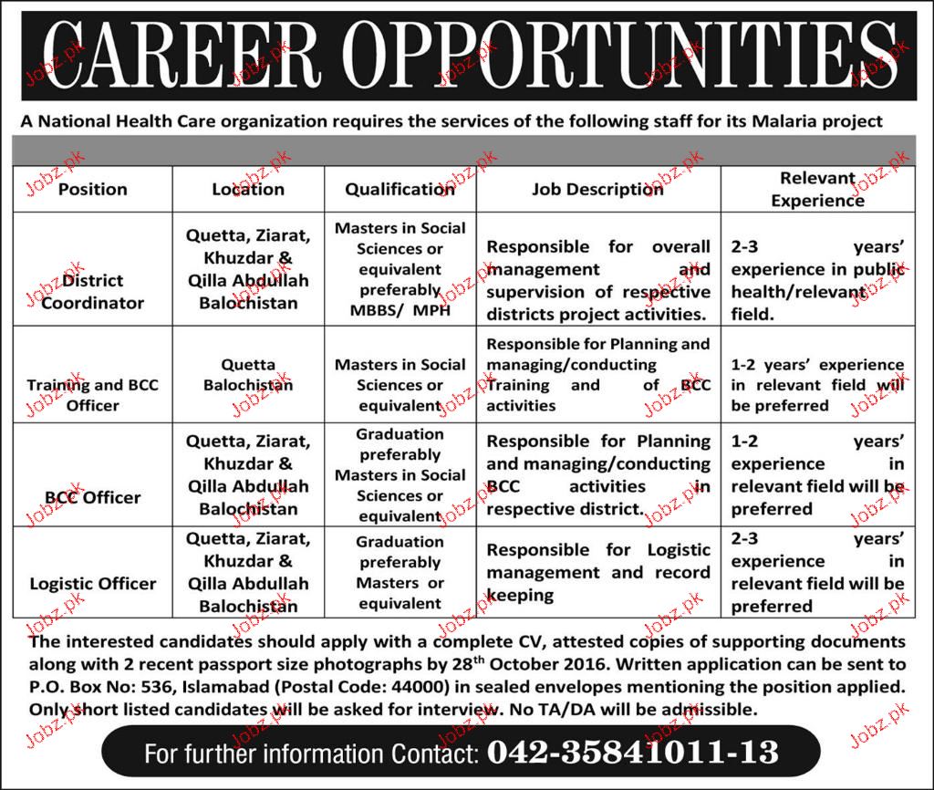 Apply as per details in job advertisement. Login to view further details of how to apply via https://www.jobz.pk online.