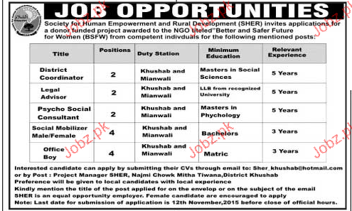 Latest Private Company Admin Clerical Posts Mianwali 2025