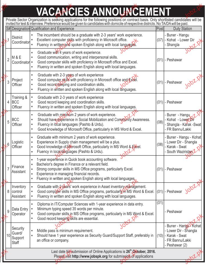 Apply as per details in job advertisement. Login to view further details of how to apply via https://www.jobz.pk online.