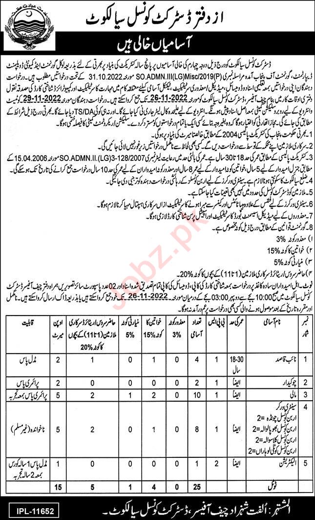 District Council is looking for candidates for following posts as per job advertisement published in daily Express Newspaper of November 13, 2022 for location Sialkot, sialkot Punjab Pakistan: