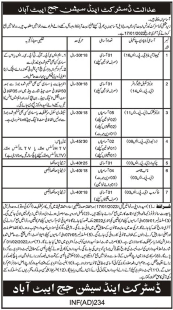 Latest District & Session Judge Admin Clerical Posts Abbottabad 2025