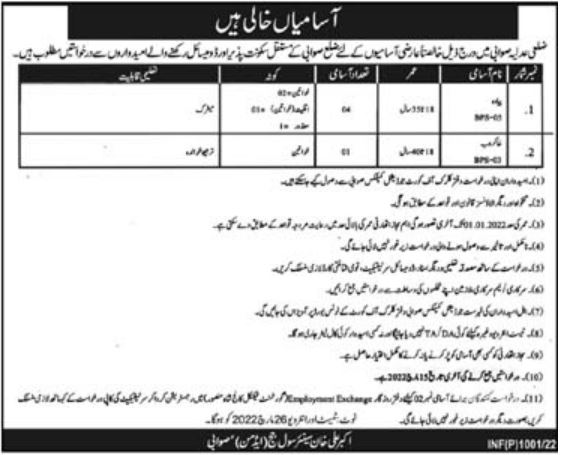 Vacant posts including Piyada, Dispatch Rider, Khakroob and Sweeper are announced in Senior Civil Judge Office Lower Dir Khyber Pakhtunkhwa KPK Pakistan as per 16 February 2022 advertisement in daily Mahasib Newspaper. Educational qualifications required Matric, Primary and Middle etc.